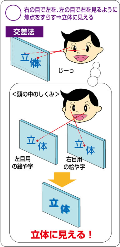 3dステレオグラムには「平行法」と「交差法」の2種類の見方があります。