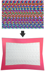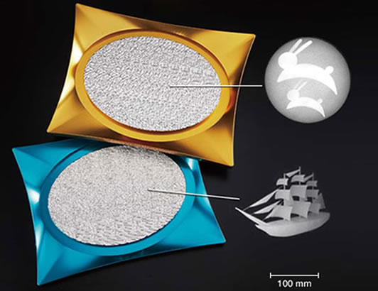 Craftsmen who inherited manufacturing traditionfrom ancient times used state-of-the-art machine tools and programming techniques to complete wholeheartedly the "Miyako MODERN Gem". Stereograms used to be only available in 2D on planar printed matter but thanks to our Company's unique technology they are now pre-sented in a 3D like unevenness on the object surface. This technique is called "Nango carving".